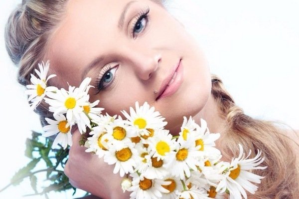 Традиционно отвар из цветов ромашки используется для осветления и придания красивого золотистого оттенка светлым локонам. Мало кто знает, что и для темных кос способ вполне годится. Конечно, радикального изменения цвета ожидать не стоит, но результат на темно-русых, каштановых волосах будет заметен – изменение оттенка на 2–3 тона.
