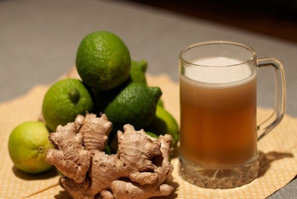- сок половины лимона и тертый имбирь перемешивают со стаканом светлого пива до однородной массы;
