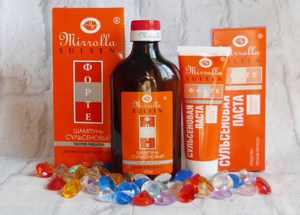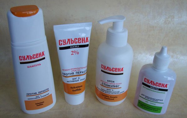 Применяется для профилактики. Действующее вещество – дисульфид селена (замедляет процесс созревания и отшелушивания клеток кожи, препятствует размножению грибка). Также оказывает противовоспалительный эффект. Отличается резким специфическим запахом. Цвет – оранжевый или оранжево-жёлтый. Более подробно о шампуне читайте  в этой статье.